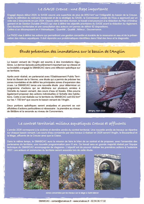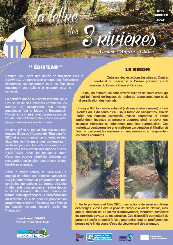 VOUS ÊTES ICI : Accueil > Actualités > la lettre des 3 rivières « Creuse – Anglin – Claise »